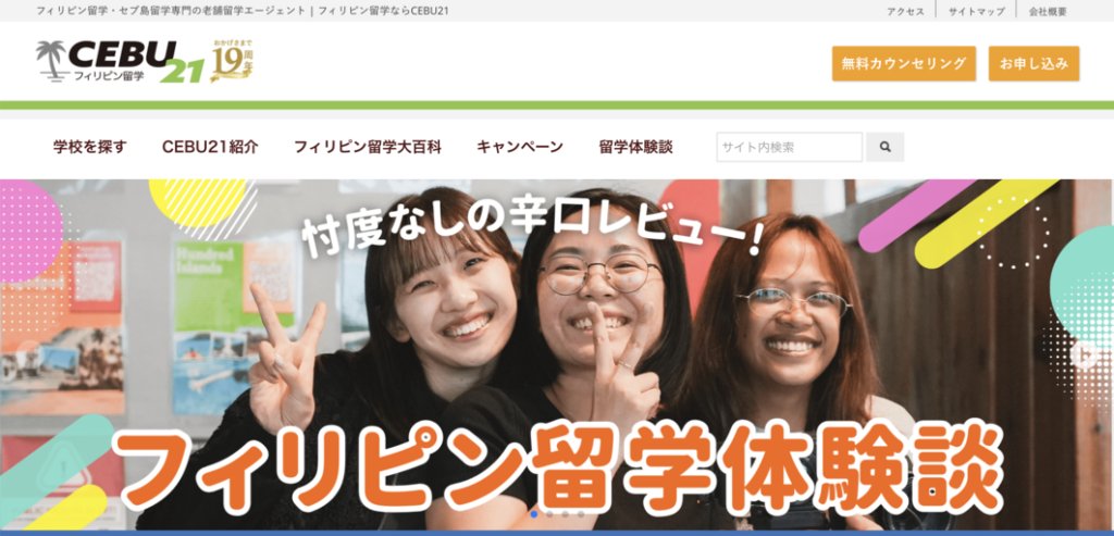 フィリピン・セブ島留学におすすめの人気エージェント9つ目は「フィリピン留学CEBU21」です。