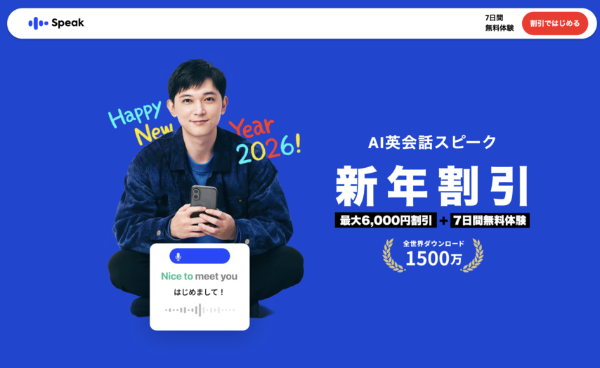 【2026年1月12日まで】Speakスピーク新年割引最大6000円OFF +7日間の無料体験